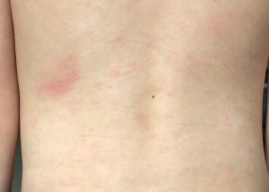 A woman, otherwise healthy, in her 50’s, she was examined via online consultation by our clinic with a 3-month history of grouped blisters and erythematous plaques on her arms. She had received a diagnosis of pemphigus at local hospital. Laboratory studies showed a blood alkaline phosphatase level of 130 units per liter (reference range, 35 to 104 units per liter) and serum immunoglobulin A level of 4.530 gram per liter (reference range, 0.7000 to 4.0000 gram per liter). A Skin biopsy was not ordered or performed due to the COVID-19 lockdown by the local goverment. She was prescribed Dexamethasone (steroids) tablets and Transfer Factor supplement to relieve the symptoms, however her blisters did not subside.